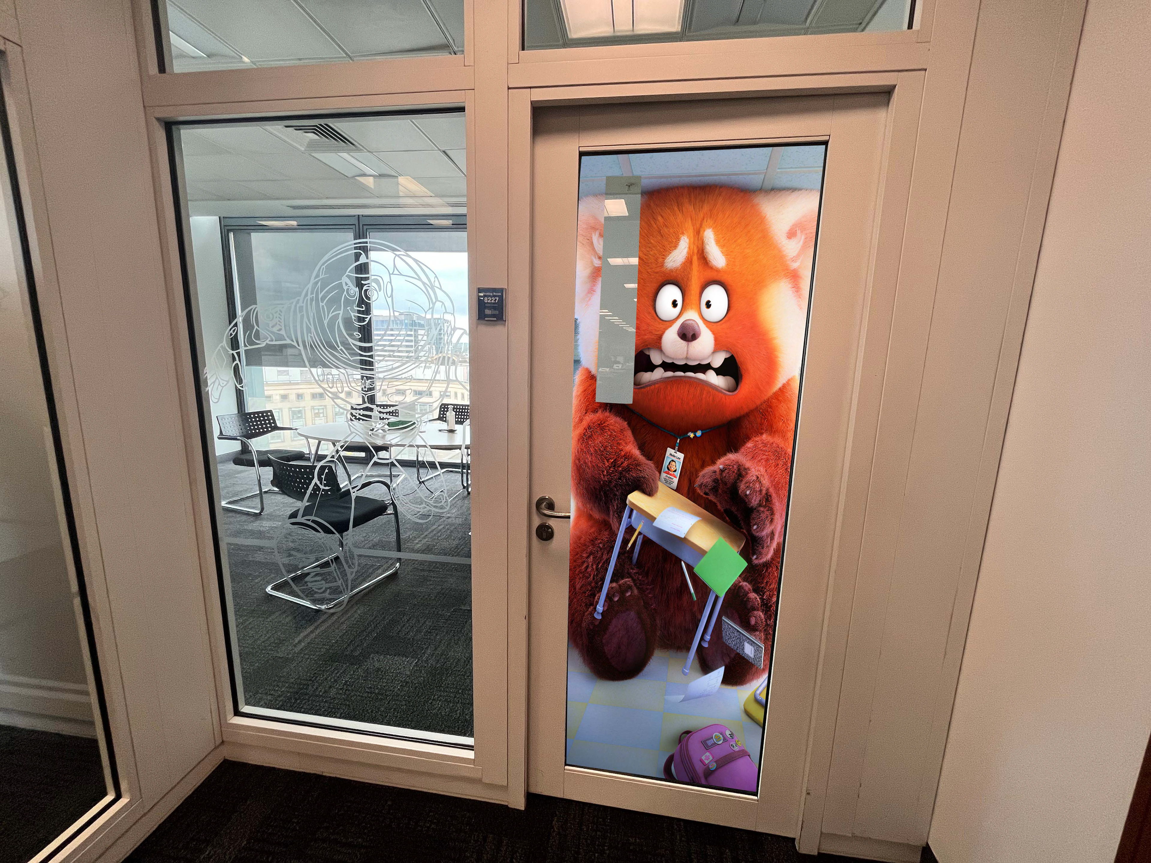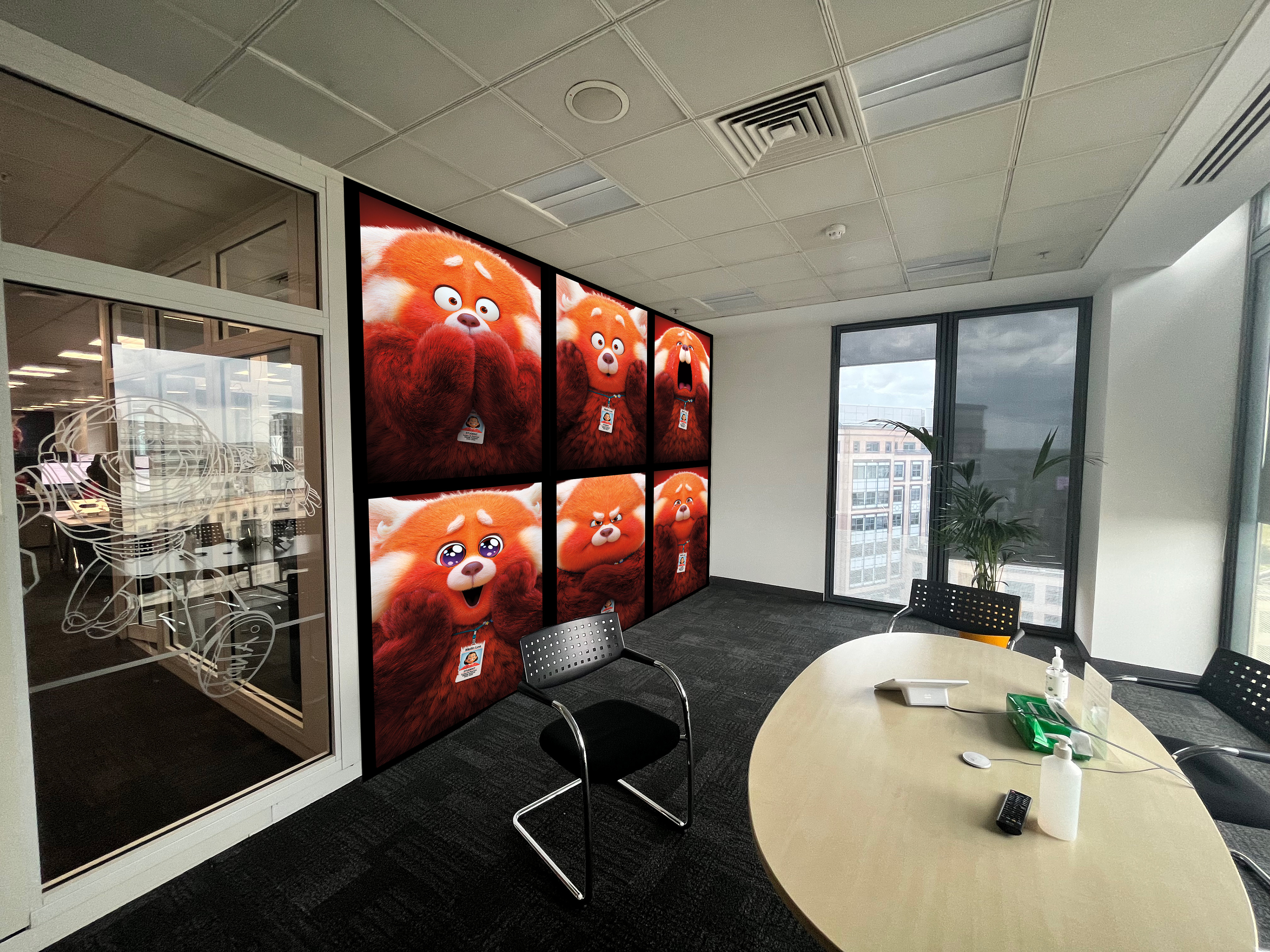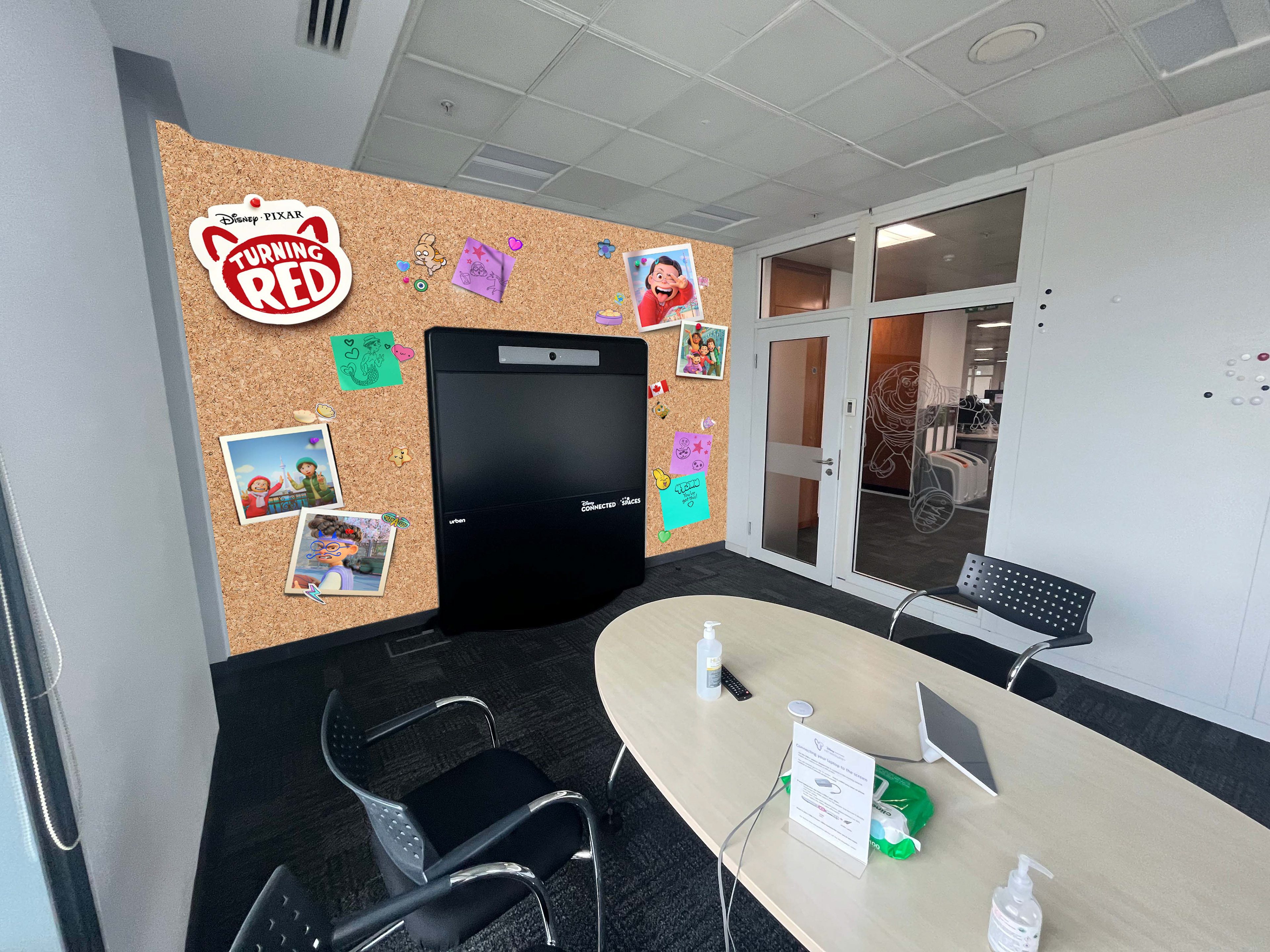 An opportunity arose to enhance parts of the Disney UK office space that led to my design of a fun 'Turning Red' room; bringing our Disney+ IPs to life. Below you can see the initial mockups and then the final result.