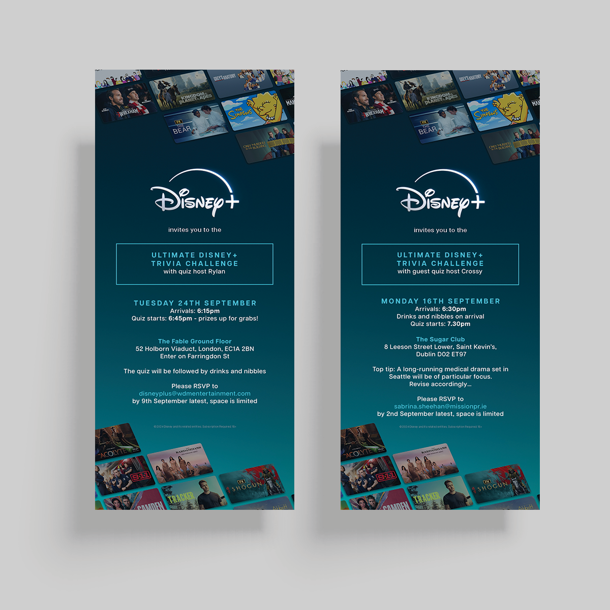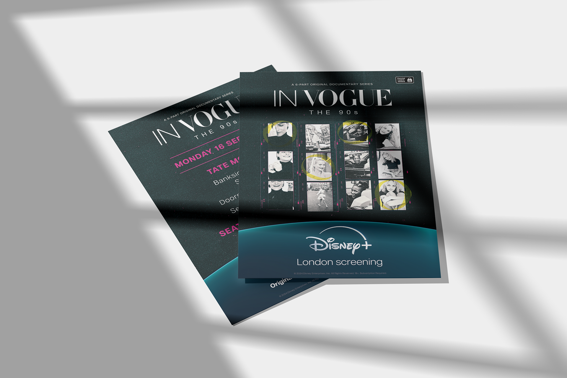 Designs for Disney+ original PR events: 'In Vogue: The 90s.' 'The Full Monty' & 'Finding Michael'. These projects involved creating both print and digital assets for the release of these shows, ensuring Disney+ branding was at the forefront but also celebrating the show's individuality.